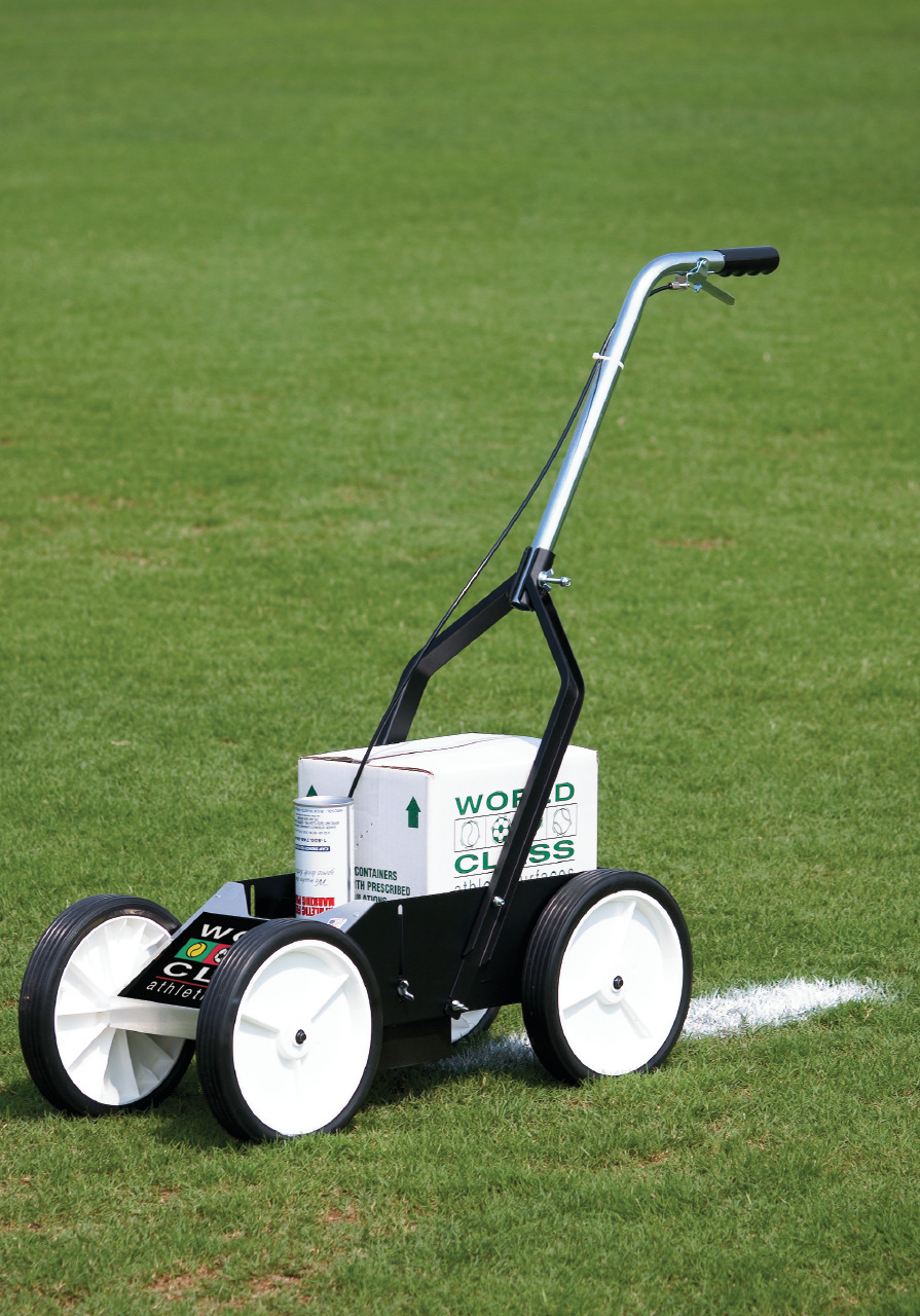 Carries 12 cans of paint for efficient striping. Handle folds down for easy storage.